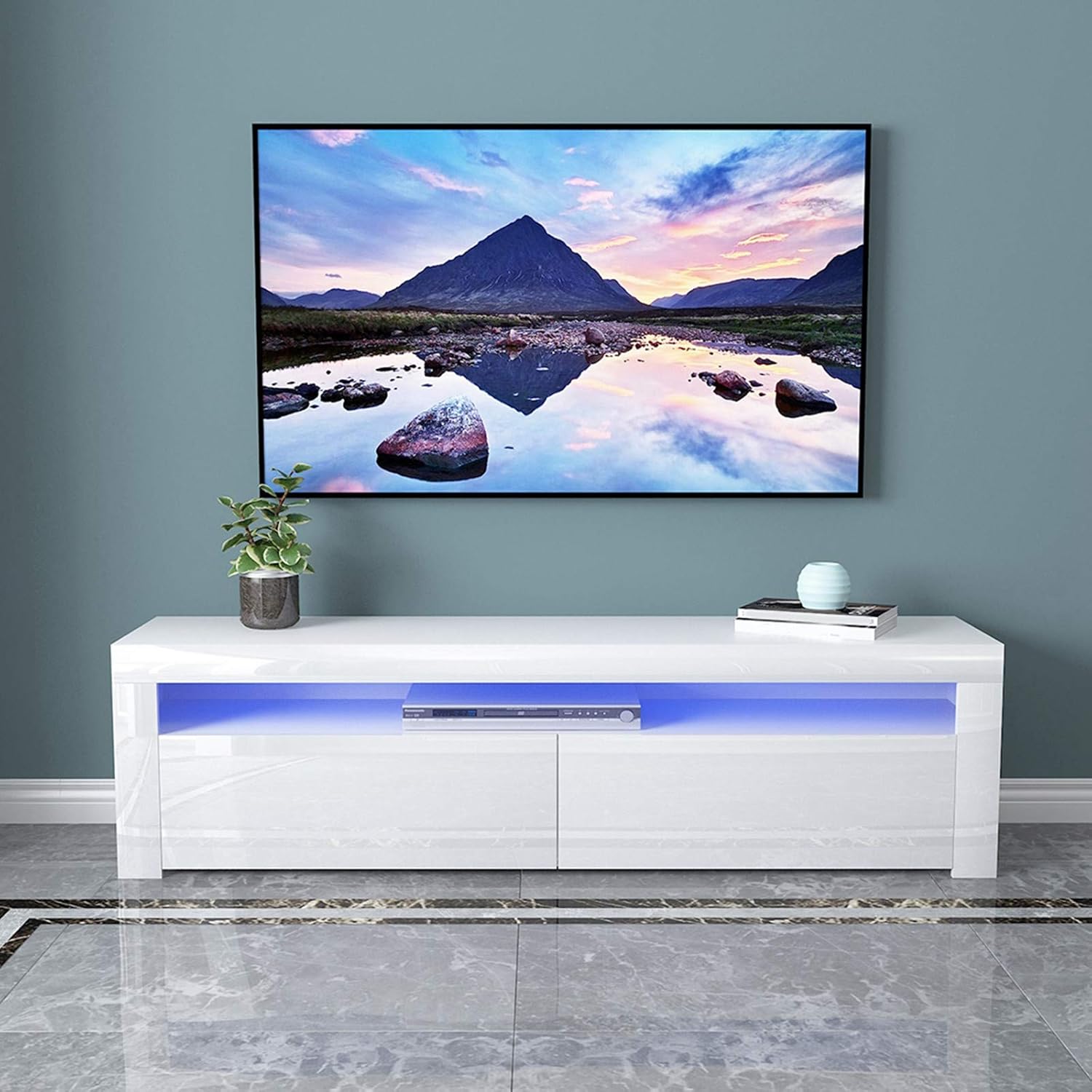 Ywindl tv cabinet short tv stand with led lights, entertainment center, modern coffee sofa gaming table for home office, storage shelves cabinet for living room bedroom (white).